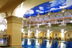 酒店以古罗马风格为基调,匠心独具的设计衬托其高贵、典雅的环境,集温泉、客房、餐饮、浴足、SPA、棋牌为一体。